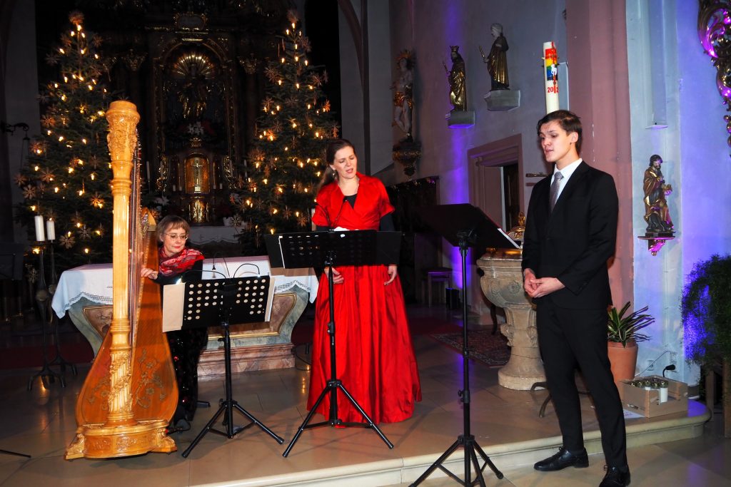 Überwältigt vom großen Interesse zum Abschlusskonzert des 1000-jährigen Jubiläums des Marktes Burgebrach zeigte sich Erster Bürgermeister Johannes Maciejonczyk bei der Begrüßung in der voll besetzten Pfarrkirche St. Vitus. Mit Blick auf das zurückliegende Jahr dankte er allen Bürgerinnen und Bürger für ihr Mitwirken, ihr Mitfeiern und ihre Gemeinschaft. Claudia Raab und Valentin Raab verzauberten mit ihren Stimmen das Publikum. Teilweise wurden sie begleitet von Rosemarie Seitz an der Harfe, Ferdinand Schramm an der Trompete und Thomas Meyer an der Orgel.