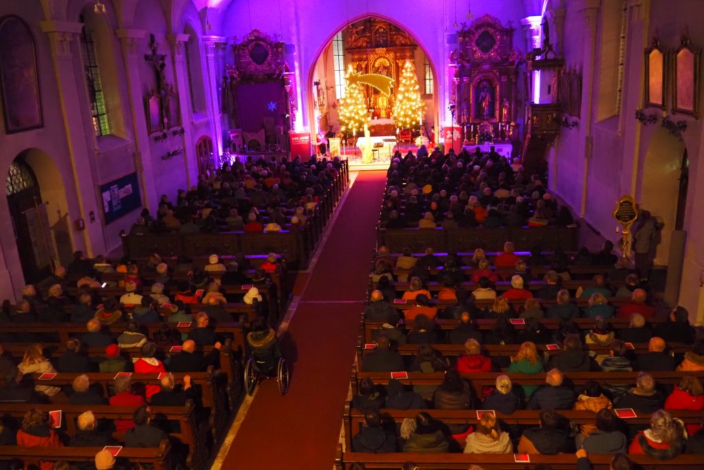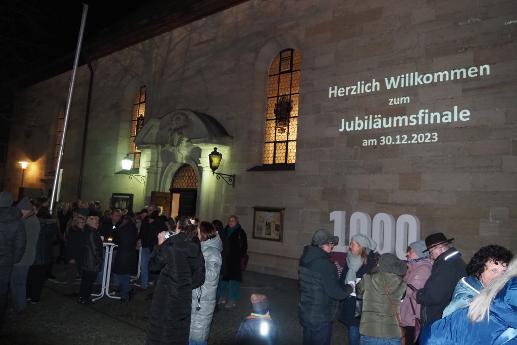 Den Abschluss bildete das gemeinschaftliche „Oh du fröhliche“ begleitet von einer großartigen Orgelbegleitung. Im Anschluss ließen die Besucher das Jubiläumsjahr auf dem stimmungsvoll beleuchteten Kirchplatz mit kleinen kulinarischen Genüssen ausklingen – untermalt mit einer Bilderschau von Eindrücken aus dem Festjahr.
