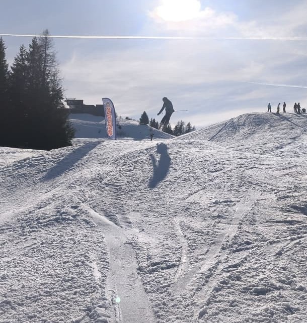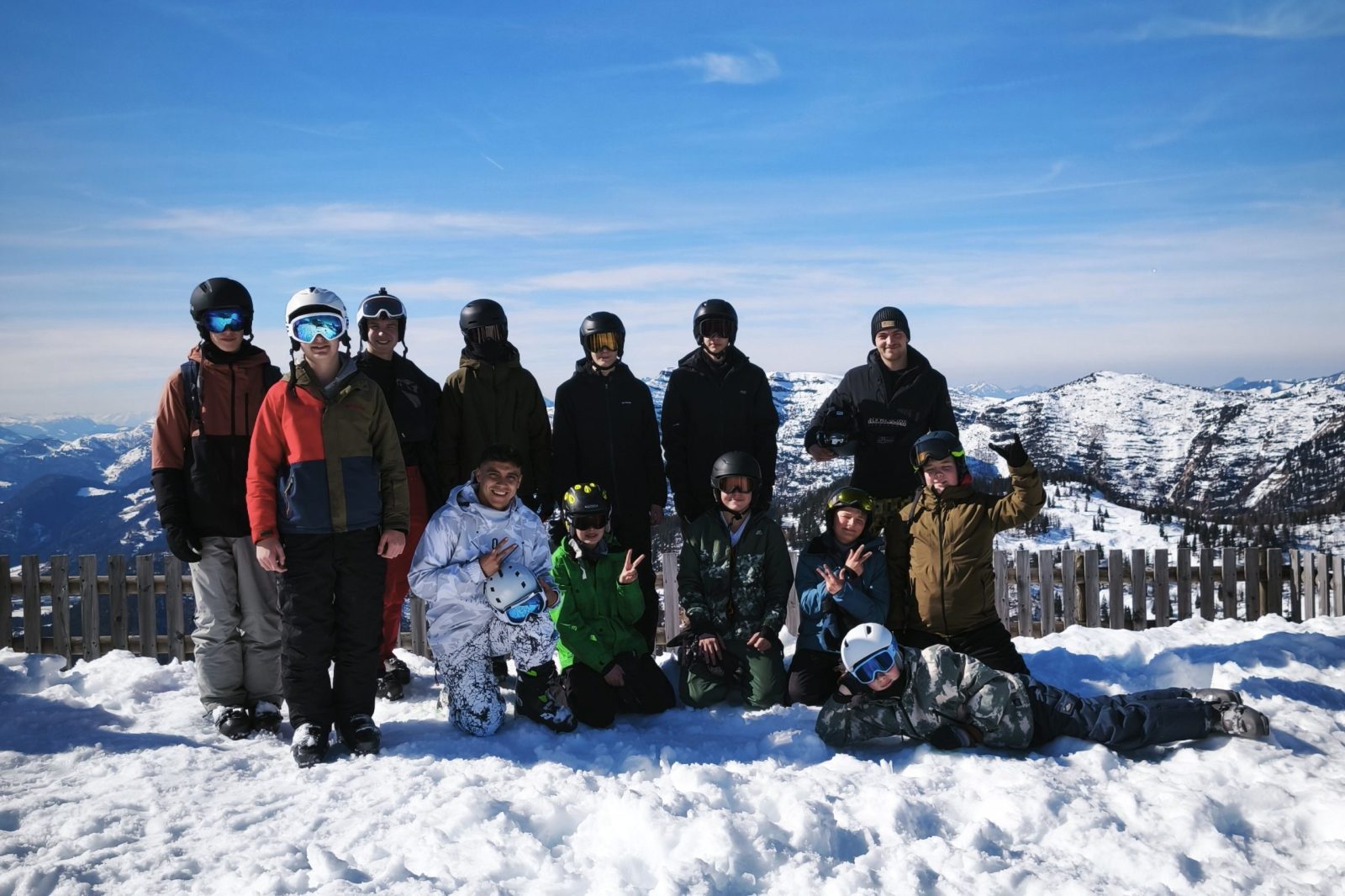 Vor Ort angekommen begrüßte uns der strahlende Sonnenschein. Schnell ging es mit den Liften auf die Bergstation von wo wir in Kleingruppen das gesamte Skigebiet erkundigte. Egal ob man eher weite blaue Pisten, steile schwarze Pisten oder den Funpark bevorzugte – Hier war für jeden etwas geboten. Auch das traumhafte Wetter sorgte den ganzen Tag über für gute Stimmung.