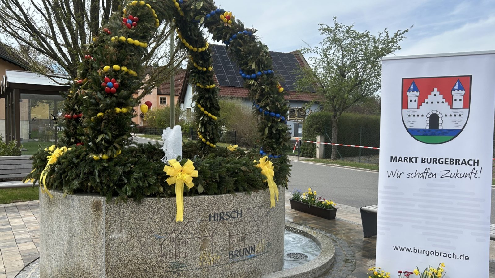 Strahlende Sonne, bilderbuchblauer Himmel, ein prächtig geschmückter Osterbrunnen, bestgelaunte Besucher und illustre Gäste: Der Burgebracher Gemeindeteil Hirschbrunn feierte die Segnung des neuen Brunnens samt Umgriff am Ostersonntag mit einem gelungenen Fest, bei dem Gemeinschaft erlebbar wurde. Durch die Veranstaltung führte ein gut gelaunter Bernd Bayer, den ein ebenso gut aufgelegter Erster Bürgermeister Johannes Maciejonczyk als „Vertreter der Dorfgemeinschaft“ bezeichnete. Couragiert umrahmte das junge Bläserduo Helena Trunk und Isabell Masching die Veranstaltung.