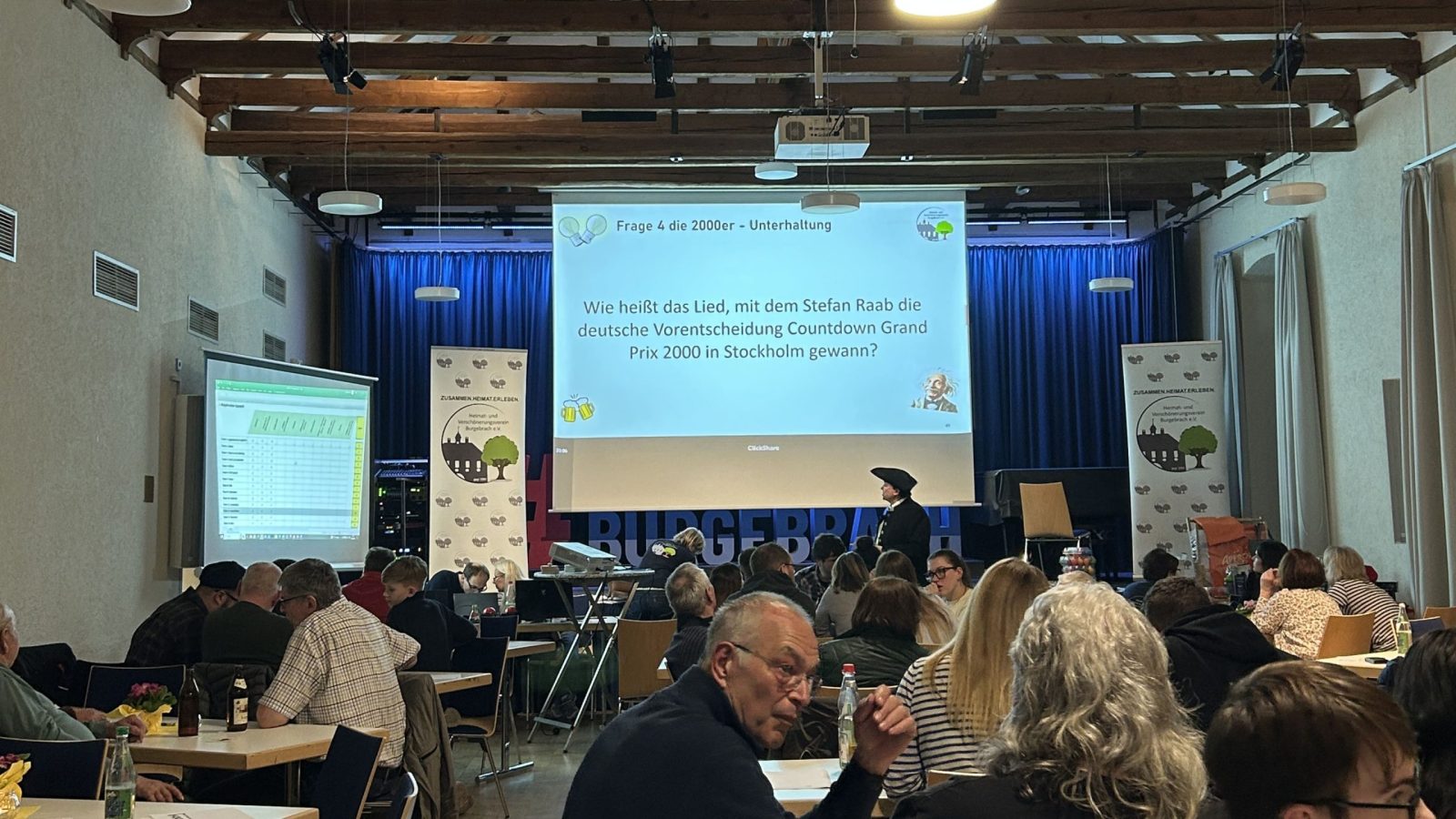 Besonders großen Anklang fanden die zahlreichen Fragen mit direktem Heimatbezug. Der Quizmaster und Vereinsvorsitzende, Markus M. Mehlhorn, hatte zusammen mit seinem Redaktionsteam interessante Fakten zur Geschichte Burgebrachs zusammengetragen. Dabei kam so manches fast vergessene Wissen wieder ans Tageslicht – selbst langjährige Burgebracher Bürger staunten über neue Erkenntnisse zu ihrer Heimat. Diese lokale Komponente verlieh dem Quiz eine besondere Note und förderte zugleich das Heimatinteresse der Teilnehmer.