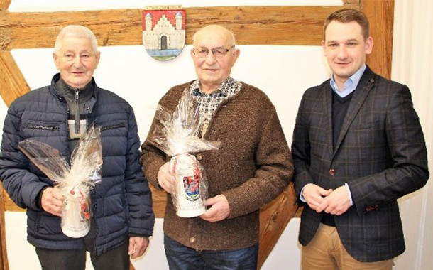 Auf dem Bild v.l.n.r. Adam Burkard, Adam Saueressig, 1. Bürgermeister Johannes Maciejonczyk.