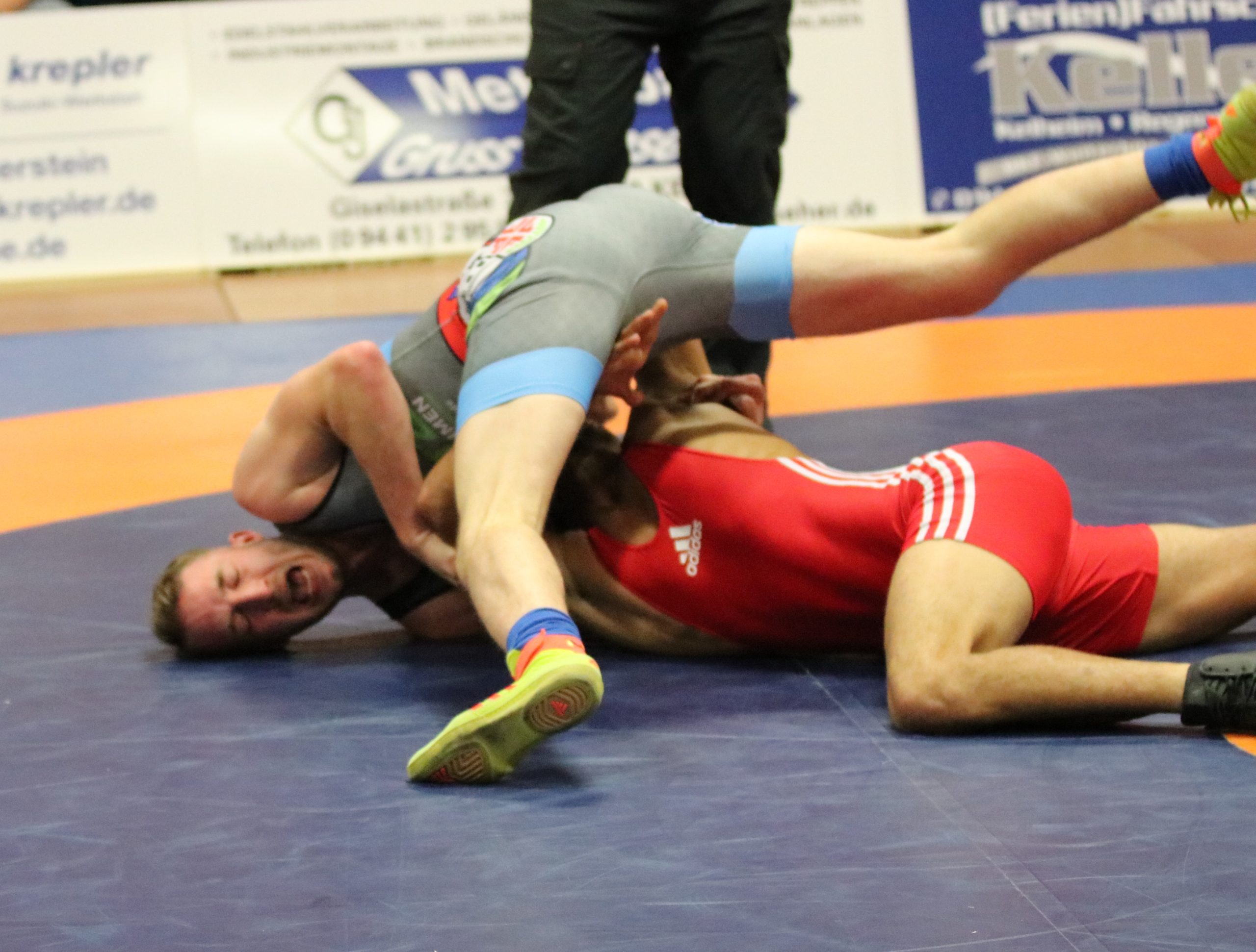 80 kg Freistil: Alexander Giehl und Mike Fischer lieferten sich ein Duell auf Augenhöhe. Beide gaben alles. Nach sechs Minuten gewinnt der Gastgeber hauchdünn mit 4:2 (Zwischenstand 6:15).
