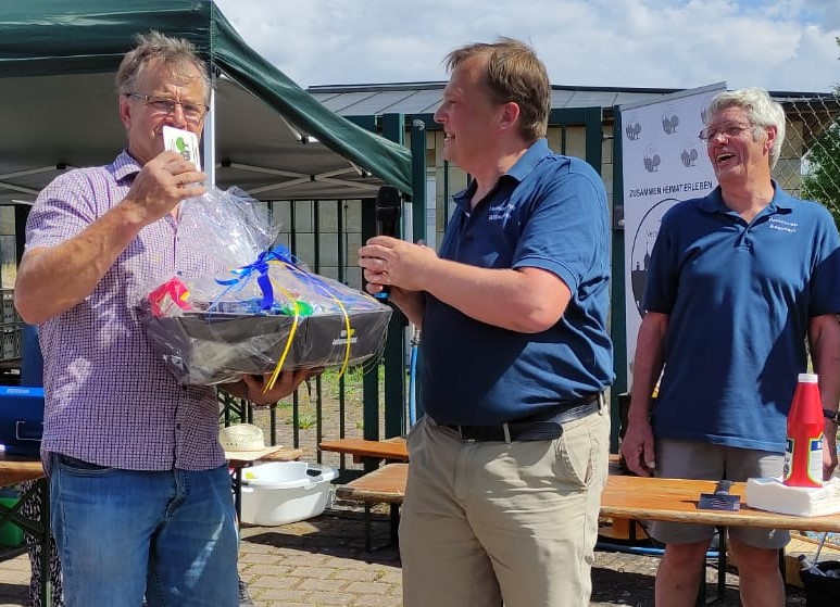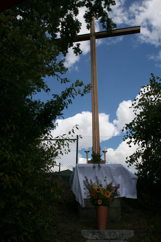 „Das erste Kreuz auf dem Goldberg wurde im Rahmen der damaligen Volksmission bereits 1948 kurz nach dem Ende des Zweiten Weltkriegs als einfaches Holzkreuz vom damaligen Kaplan Otto Sage errichtet“, erinnerte Bürgermeister Johannes Maciejonczyk an die Geschichte des Goldbergkreuzes in seinem Grußwort. Er lobte den Heimatverein ausdrücklich für das Engagement sich diesem Kreuz nun schon seit 1975 beständig anzunehmen und dies auch im Jahr 2022 so fortzusetzen. Auch Pfarrer Friedmann, der mit vier Ministranten den Segnungsgottesdienst durchführte, dankte dem Verein für das Engagement. Besonders freut es ihn, dass durch die neue LED-Beleuchtung das Kreuz auch nachts erstrahlen kann. Begleitet wurde der festliche Gottesdienst musikalisch durch das verdiente Vereinsmitglied Elisabeth Finster.