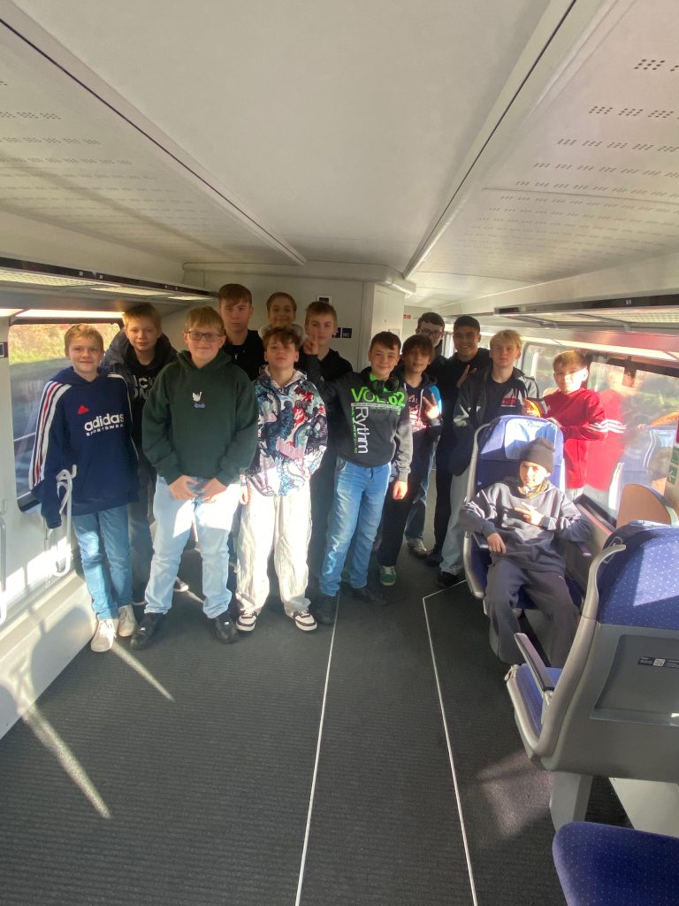 Im Anschluss ging es zurück in die Innenstadt, wo die Kids in Kleingruppen kurz selbständig die anliegenden Geschäfte erkunden konnten. Nach der Erkundung folgte der Besuch im fsociety, einem Anbieter für Virtual Reality (VR) Action . Nach kurzer Einweisung erhielten wir VR-Brillen und tauchten ab in verschiedene Spielwelten. Mal führten wir Laserschwerter im Takt zur Musik, mal verteidigten wir als Bogenschütze eine Burg – Hier war für jeden etwas dabei. Die Zeit verging wie im Flug, so dass wir schließlich zum Bahnhof zurückkehrten und mit dem ICE schnell und pünktlich Bamberg wieder erreichten.