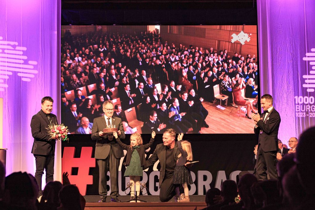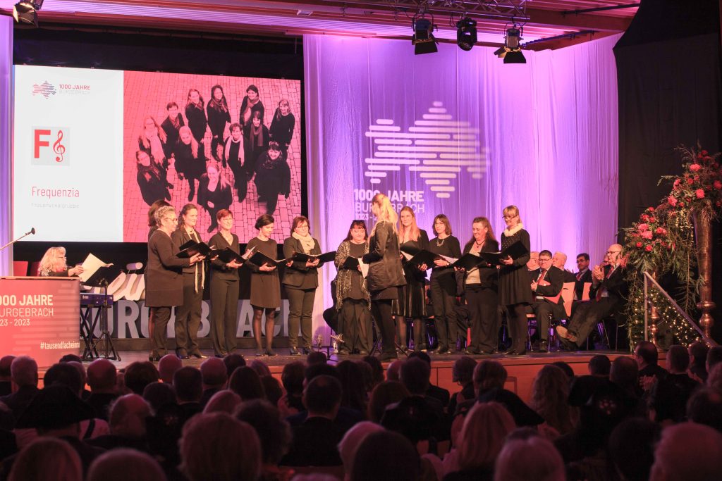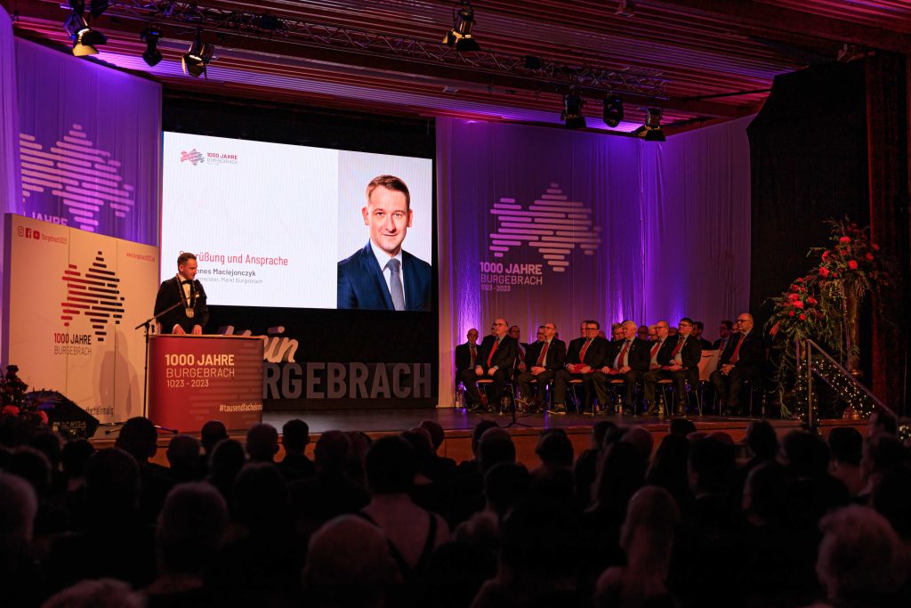 Mit einer grandiosen Gala setzten die Burgebracher nach dem fulminanten Neujahrsfeuerwerk einen weiteren Höhepunkt im Jubiläumsjahr zur 1000-Jahr-Feier. In der prächtig geschmückten Steigerwaldhalle erlebten die Gäste einen einmaligen, unterhaltsamen Festabend.