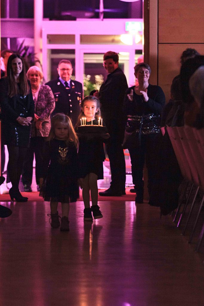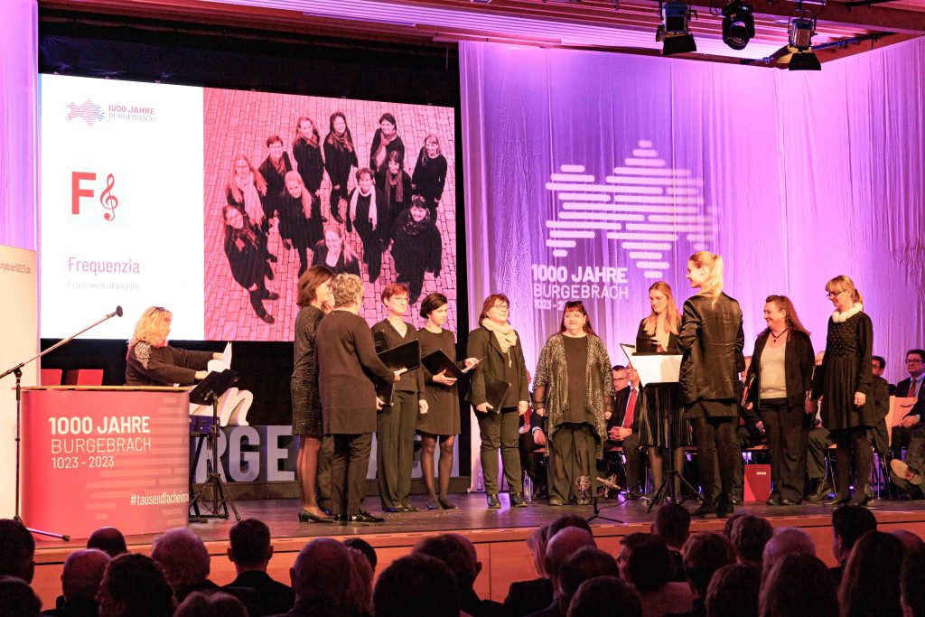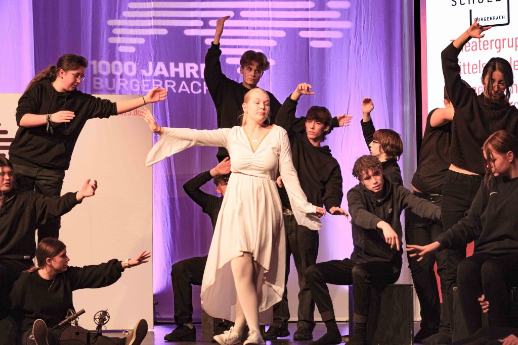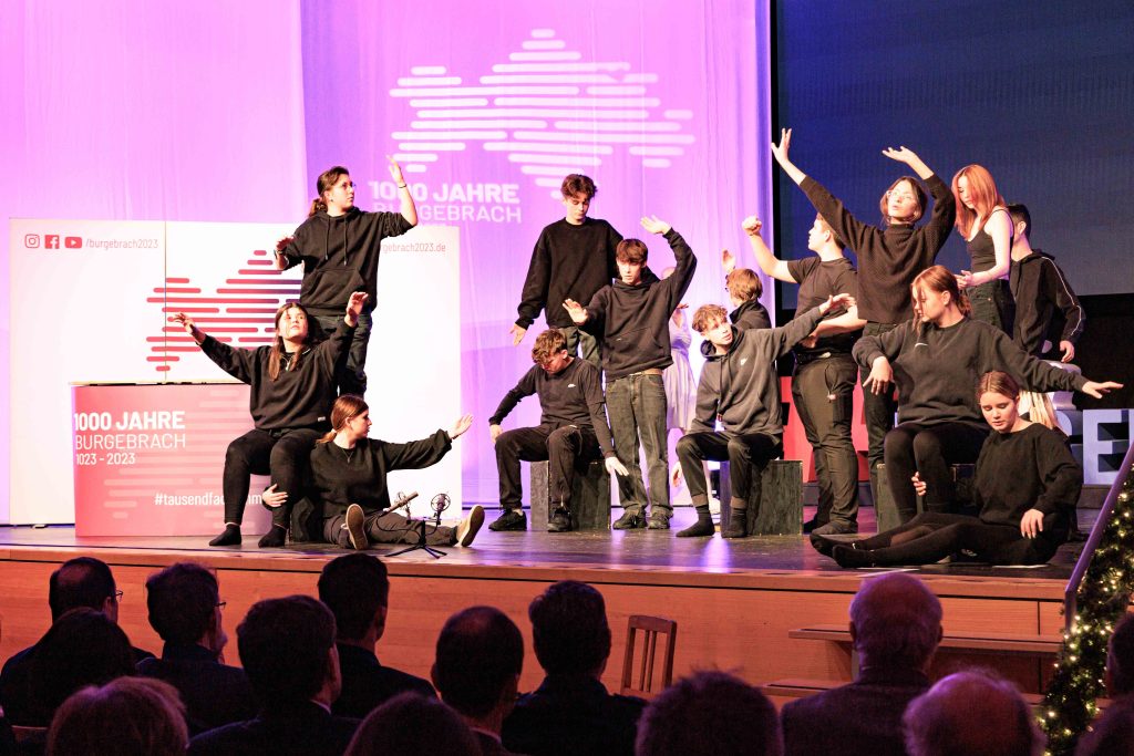 Die vielen Unterhaltungseinlagen wie eine beeindruckende Theateraufführung „ursula wind ACT“ der Mittelschüler Burgebrach sowie Gesangsvorträge des Gesangvereins im Steigerwald und der Frauenvokalgruppe Frequenzia rundeten das kurzweilige offizielle Abendprogramm ab. Höhepunkt war am Schluss ein Geburtstagsvideo für Burgebrach und die Übergabe eines Geburtstagskuchens durch die Kinder Jule und Mona Enzbrenner.