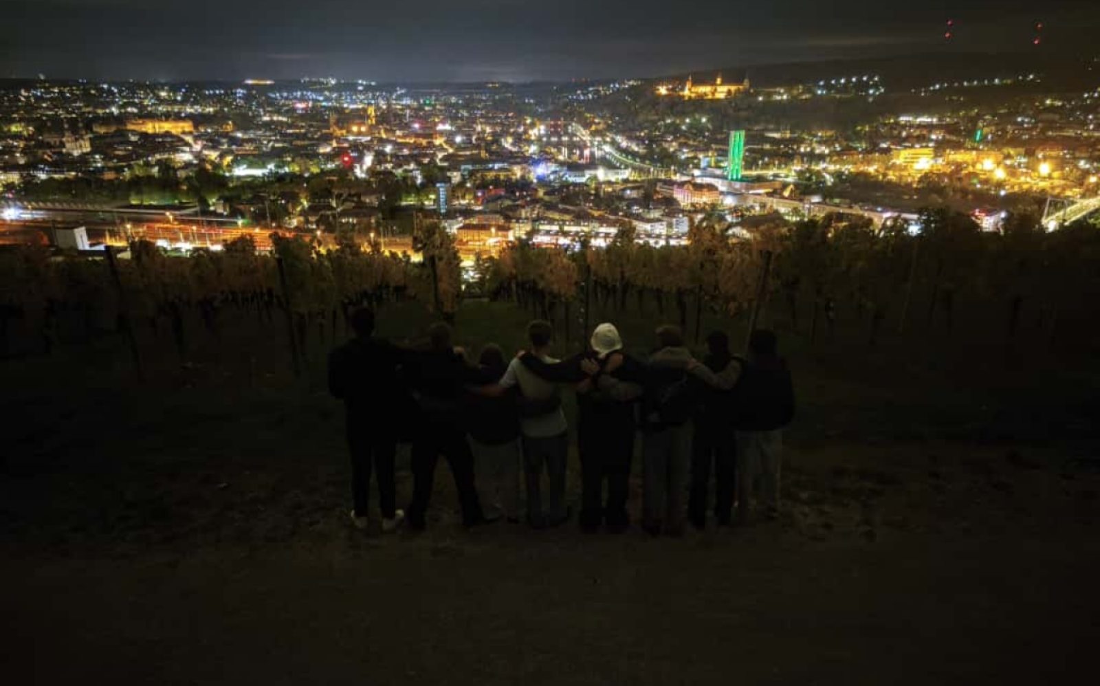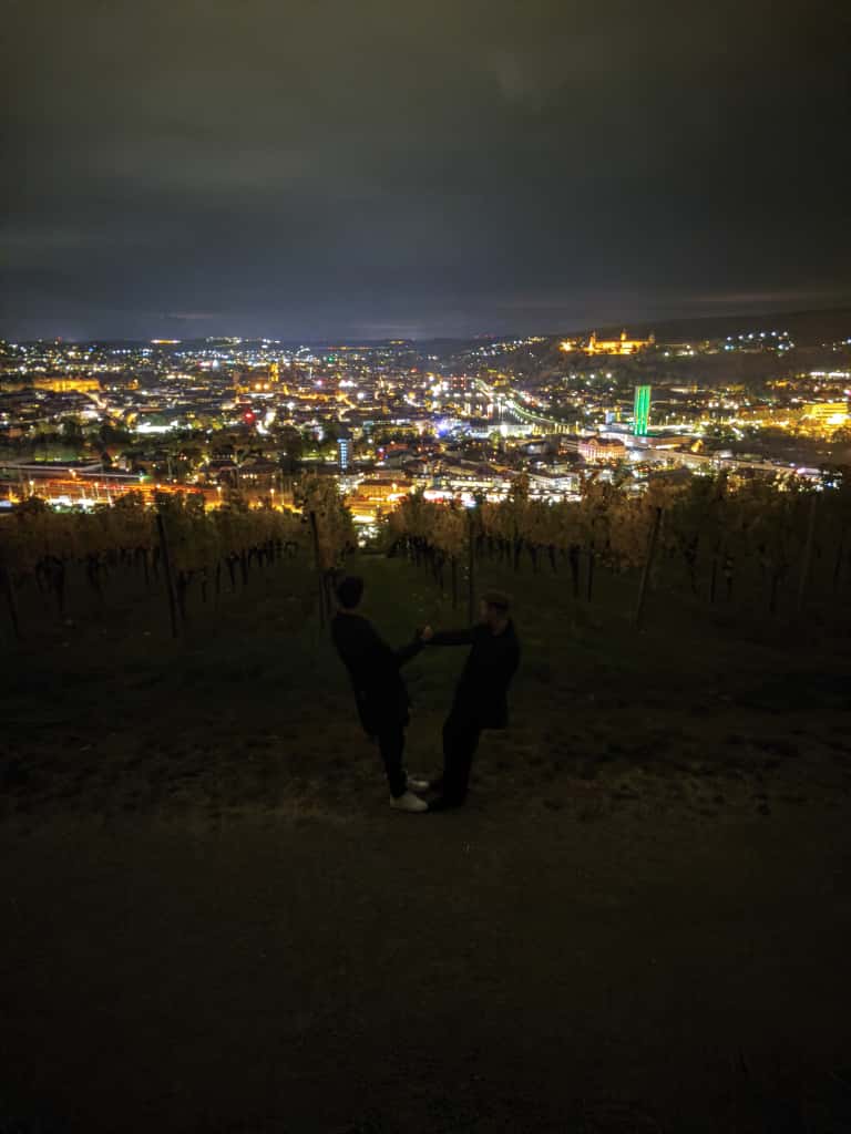 Nach kurzem Stopp bei einer lokalen Pizzeria fuhren wir auf die Würzburger Weinberge, wo wir bei bester Aussicht den Abend ausklingen ließen. Ein paar Panoramafotos von der Würzburger Skyline durften da nicht fehlen, bevor es wieder nachts zurück nach Burgebrach zurückging.