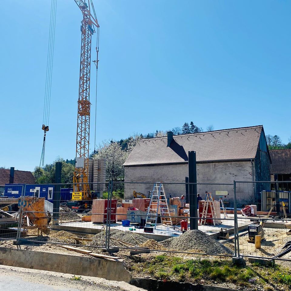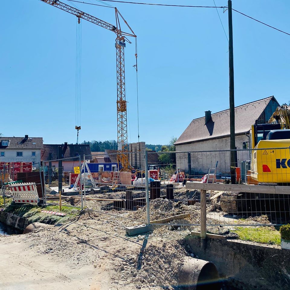 Als erste Maßnahme der Dorferneuerung Dippach wurde nun mit dem Bau des Dorfgemeinschaftshauses begonnen. Nach umfangreichen Gründungsmaßnahmen ist die Bodenplatte hergestellt, mit dem Rohbau wurde begonnen. Dieser wird in 2 Wochen bereits fertiggestellt sein. Nach den Zimmererarbeiten werden sich dann die weiteren Gewerke zügig anschließen. Bis Jahresende soll das Haus dann bezogen werden können. Im Anschluss folgt dann die Platzgestaltung um das Dorfgemeinschaftshaus sowie die umfangreichen Arbeiten im Straßenbau sowie rund um den ortsbildprägenden Bachlauf. Insgesamt ist besonders erfreulich, dass die Arbeiten dem vorgesehenen Bauzeitenplan momentan sogar einige Wochen voraus sind.