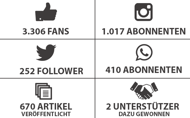 Facebook: 3.306 (+298) | Instagram: 1.017 (+299) | Twitter: 259 (+16) | WhatsApp: 400 (+76)