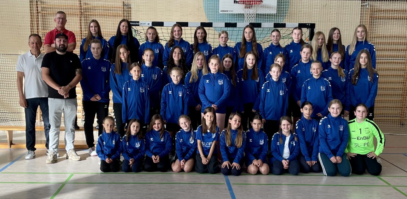 Die fünf Mädchenmannschaften der Handballabteilung des TSV dürfen sich über neue Trainingsanzüge und Trainingsjacken zum Saisonauftakt freuen.