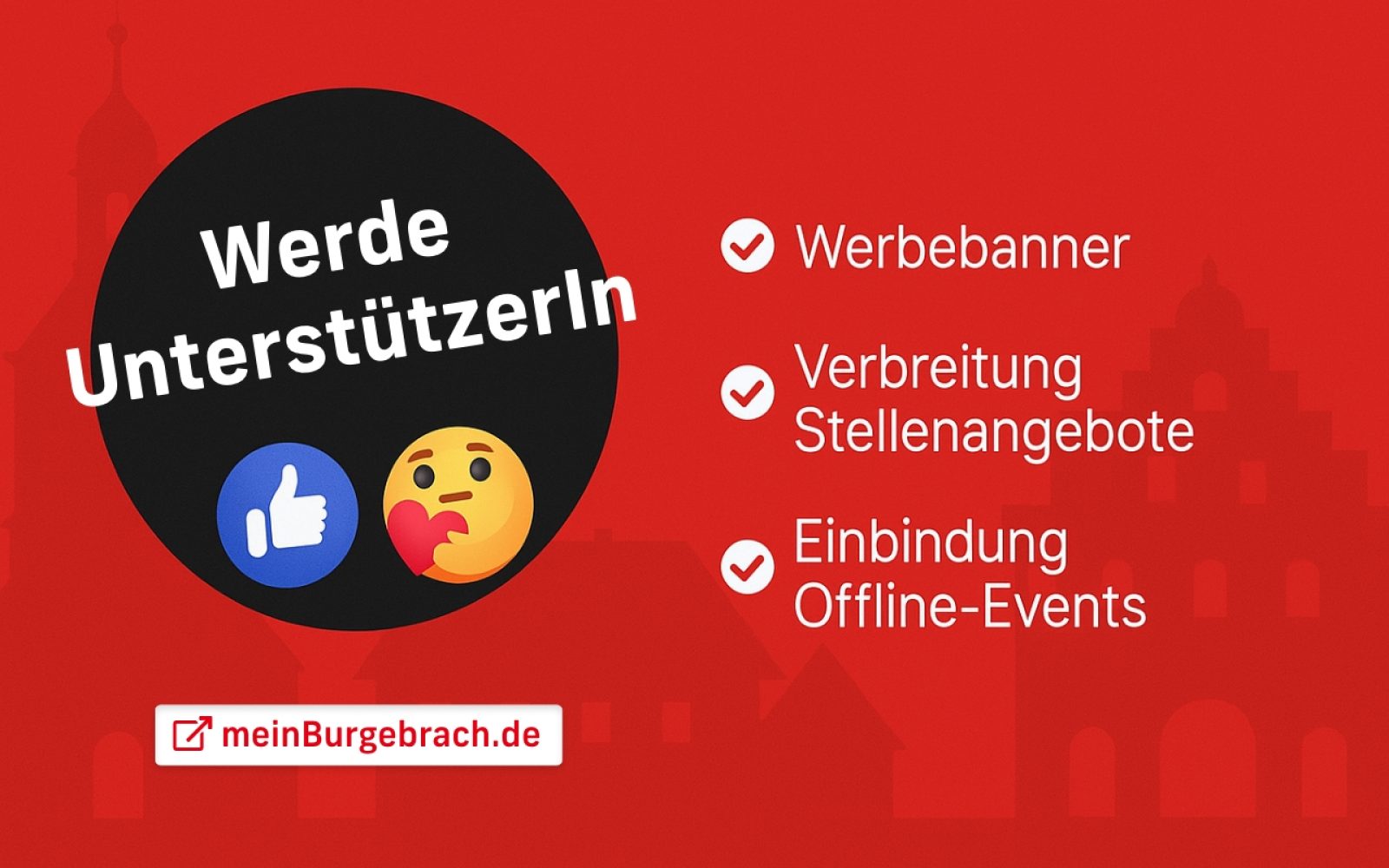 Wenn Du die Sichtbarkeit Deines Unternehmens gezielt erhöhen und gleichzeitig zeigen möchtest, dass Dir Burgebrach am Herzen liegt, dann werde Unterstützer!
