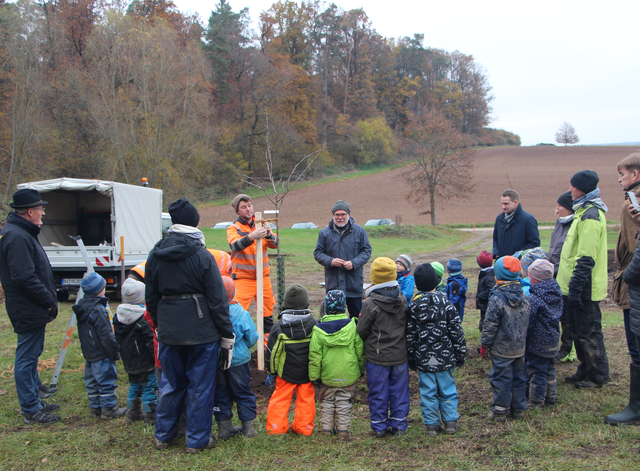 Am Waldrand in der Nähe des Waldkindergartens südlich von Burgebrach hat der Markt Burgebrach auf rund 5.000 m² in Abstimmung mit der Höheren Naturschutzbehörde ein Obstbaumfeld als Ausgleichsmaßnahme angelegt. Neben dem Kreisfachberater Uwe Hoff, dem Vertreter der Unteren Naturschutzbehörde Klaus Then und den drei Bürgermeistern Johannes Maciejonczyk, Peter Pfohlmann und Baptist Göller zeigten auch die Kinder des Waldkindergartens reges Interesse bei den Baumpflanzungen.